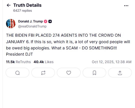Il s'agit d'un mensonge flagrant et dangereux destiné à tromper des millions d'Américains. Il existe une prépondérance écrasante de preuves indiquant le contraire. Tout d'abord, l'homme de confiance de Trump, Kash Patel, qui occupe le poste de directeur du FBI, a lui-même déclaré que les agents en civil avaient été déployés après le début de l'émeute, pour faire face à la situation. Cela va directement à l'encontre de ce que Trump insinue dans son message.